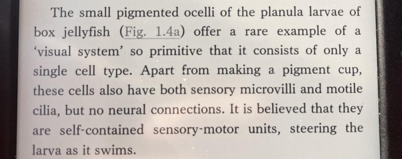 TIL: Box jellyfish larvae have eyes but no brain to connect them to so instead the eyes also swim a bit.