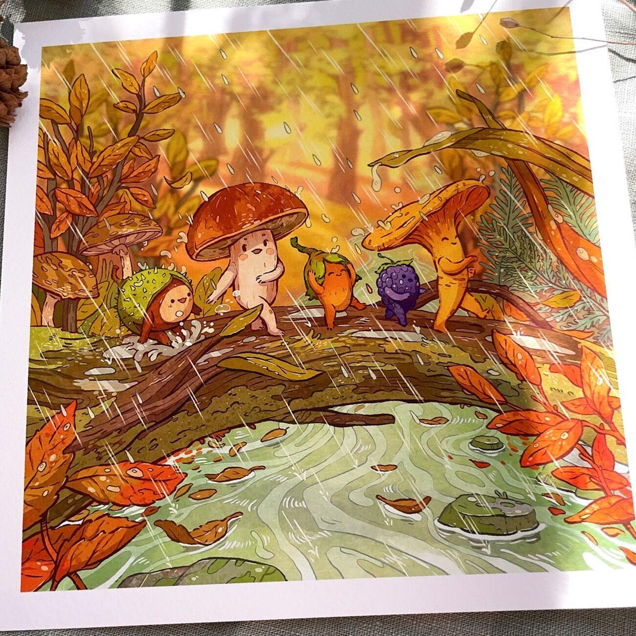 Print of my autumn forest illustration :) it’s the perfect time of the year to appreciate this artwork again 🍂 have you already met some mushrooms in the woods this season?