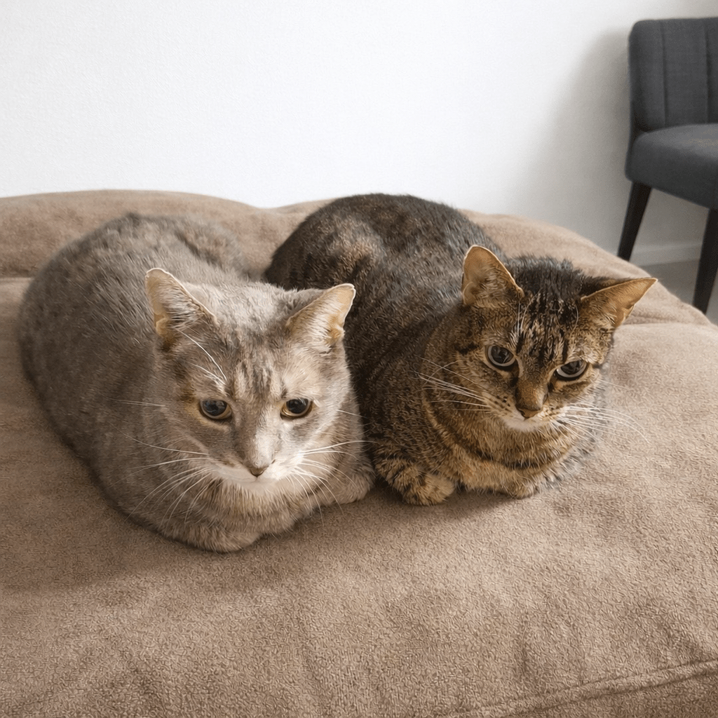 Joey and Sheena hugging & kissin #caturday #cats #love #embrace #kissing #catsofMastodon