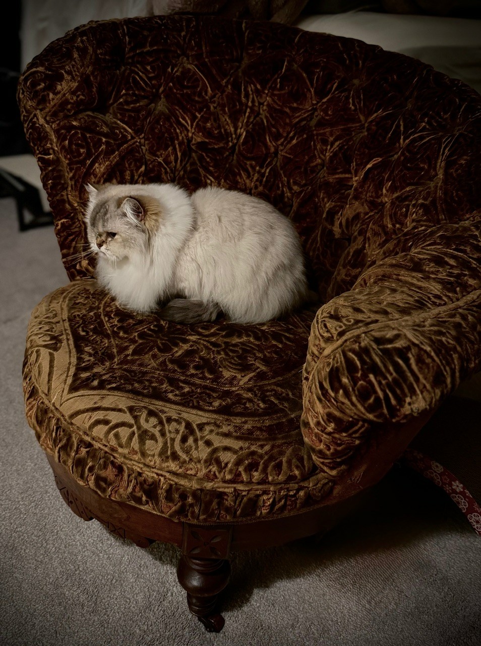 Moved some furniture around today so I could work further away from the workmen outside, and somehow the picture chair lost its never ending pile of ‘things to be put somewhere else’.