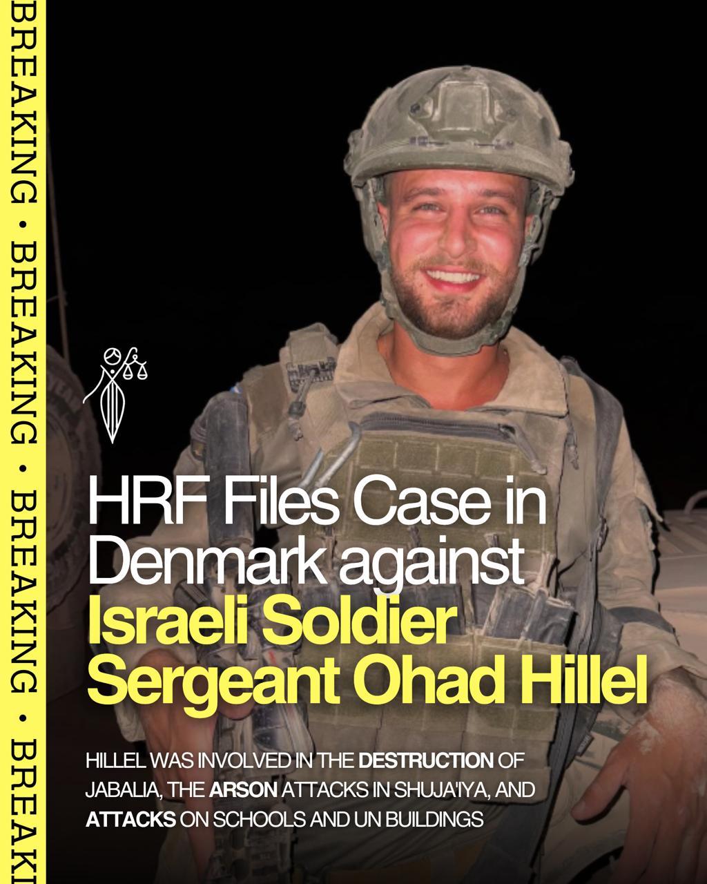 🚨The Hind Rajab Foundation filed a criminal complaint in 🇩🇰 #Denmark against Israeli soldier Sergeant Ohad Hillel.