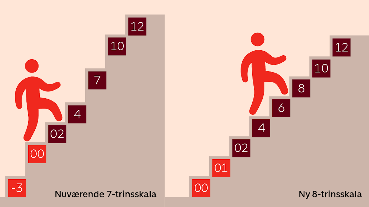 Jeg har ikke lige set nogen #Skolechat diskussion om den nye karakterskala med et ekstra trin mellem 4-10 og en stjerne til særligt gode 12-tals elever.