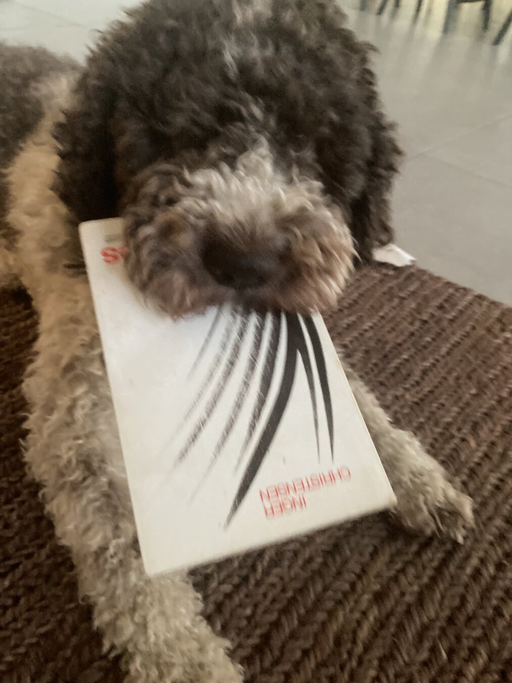 Summer was sneaking under the table to see if she could talk me into a walk before the rain comes.