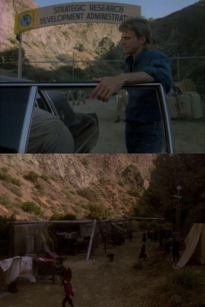 Angus MacGyver at the Strategic Research Development Administration facility in the #MacGyver episode "The Human Factor"⬆️ and the Bajoran refugee camp on Valo II (#StarTrekTNG's "Ensign Ro"⬇️), both filmed at Bronson Canyon but 5 years apart.
