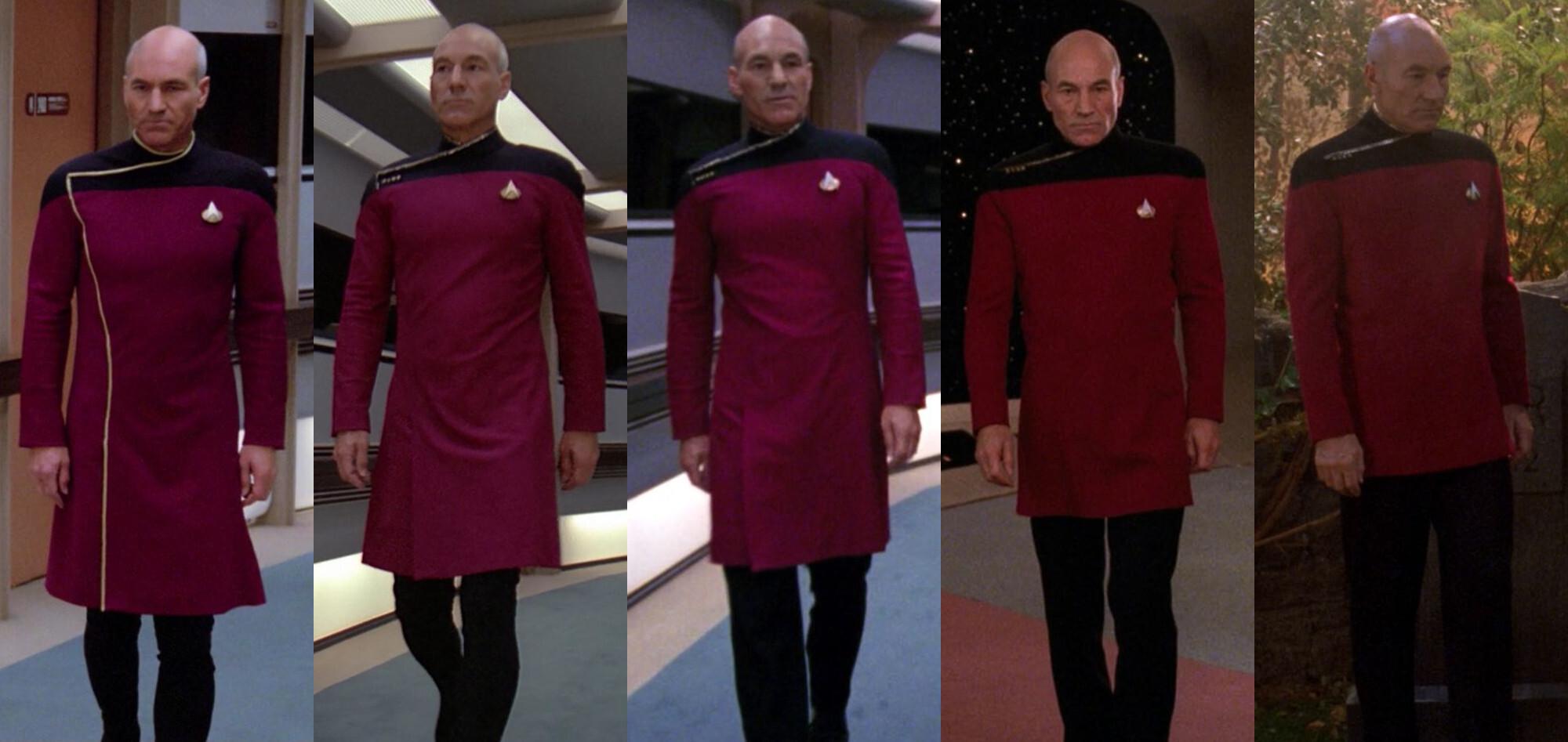 Over the course of #StarTrekTNG, Captain Picard wore five different versions of the dress uniform.