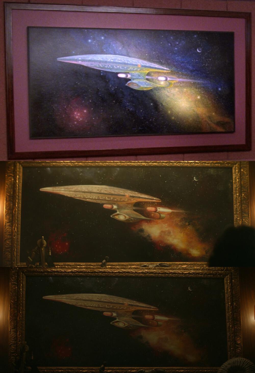 #StarTrekTNG's "Qpid"⬆️ gives us one of the best looks at Picard's Enterprise-D ready room painting, as it appears before the retouches between seasons 4 and 5.
