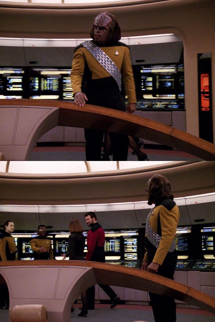 When I first saw this shot in #StarTrekTNG's "Qpid"⬆️, I was like "uh-oh, they forgot to turn off the engineering aft bridge station, Geordi isn't at the station so it should be turned off!" but then the camera panned to the left and Geordi IS on the b...