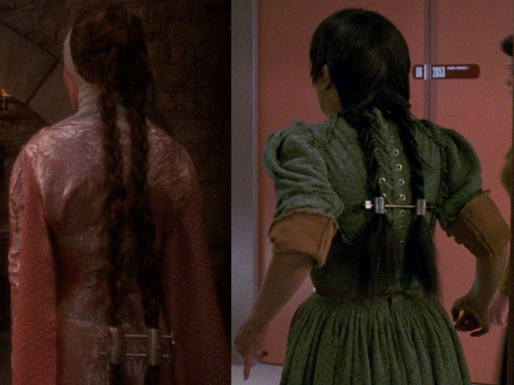 Twice on #StarTrekTNG, we see women with rather unique twin metal hair braid ties (if there's another name for this, please let me know!