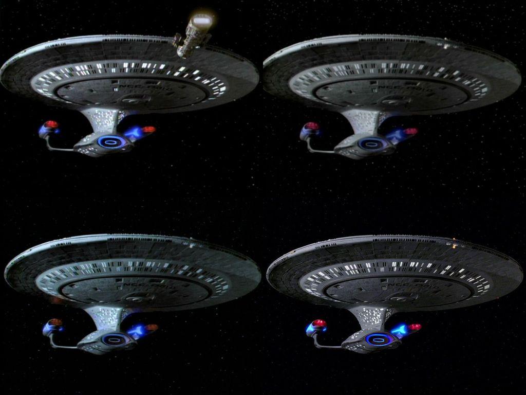 The same beauty shot of the 4-foot USS Enterprise-D model is used in #StarTrekTNG's "The Hunted"↖️, "Legacy"↗️ and "The Host"↙️.