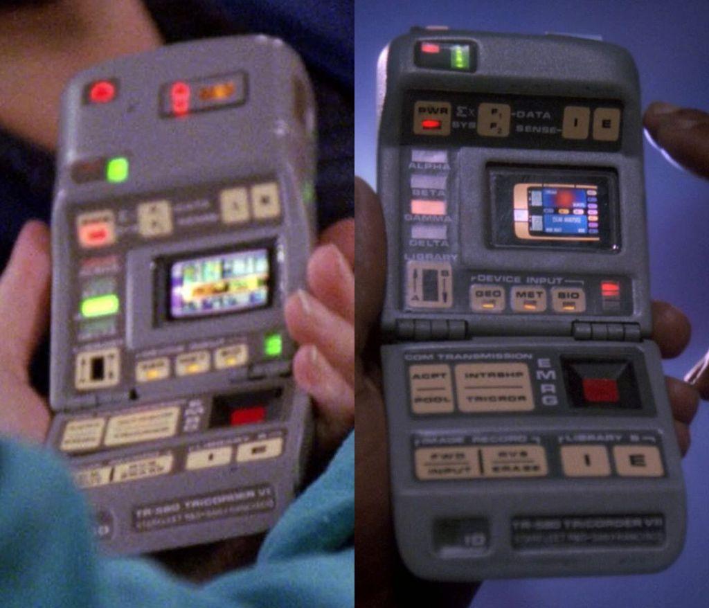 If you look really closely, you can see that the medical tricorder in #StarTrekTNG's "The Host"⬅️ still has the old "TR-560 Tricorder VI" label, even though it is already the new "TR-580 Tricorder VII" model.