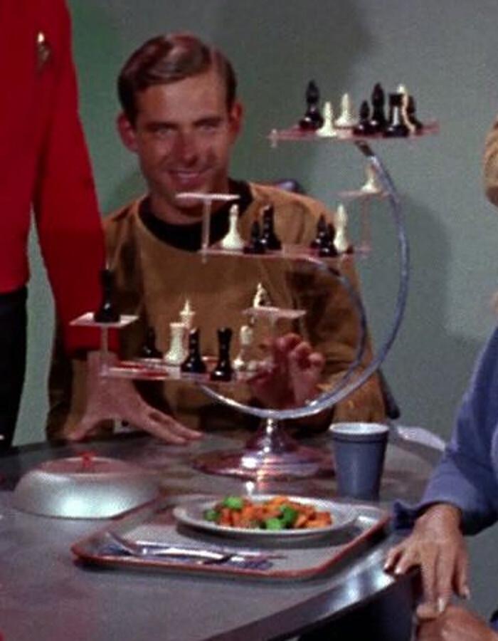 When Uhura and Spock are playing some songs for the Enterprise crew in #STarTrekTOS' "Charlie X", one of the ship's crewmembers is (not) eating from a plate of colourful food cubes (green, orange and red).