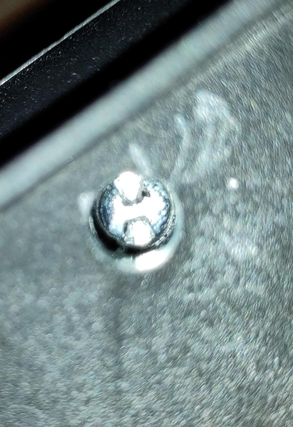 @fanden Det ligner nogle specialskruer. Der skal noget special-værktøj til - eller en lille fladtang måske. Man kan sikkert sætte nogle andre skruer i bagefter.