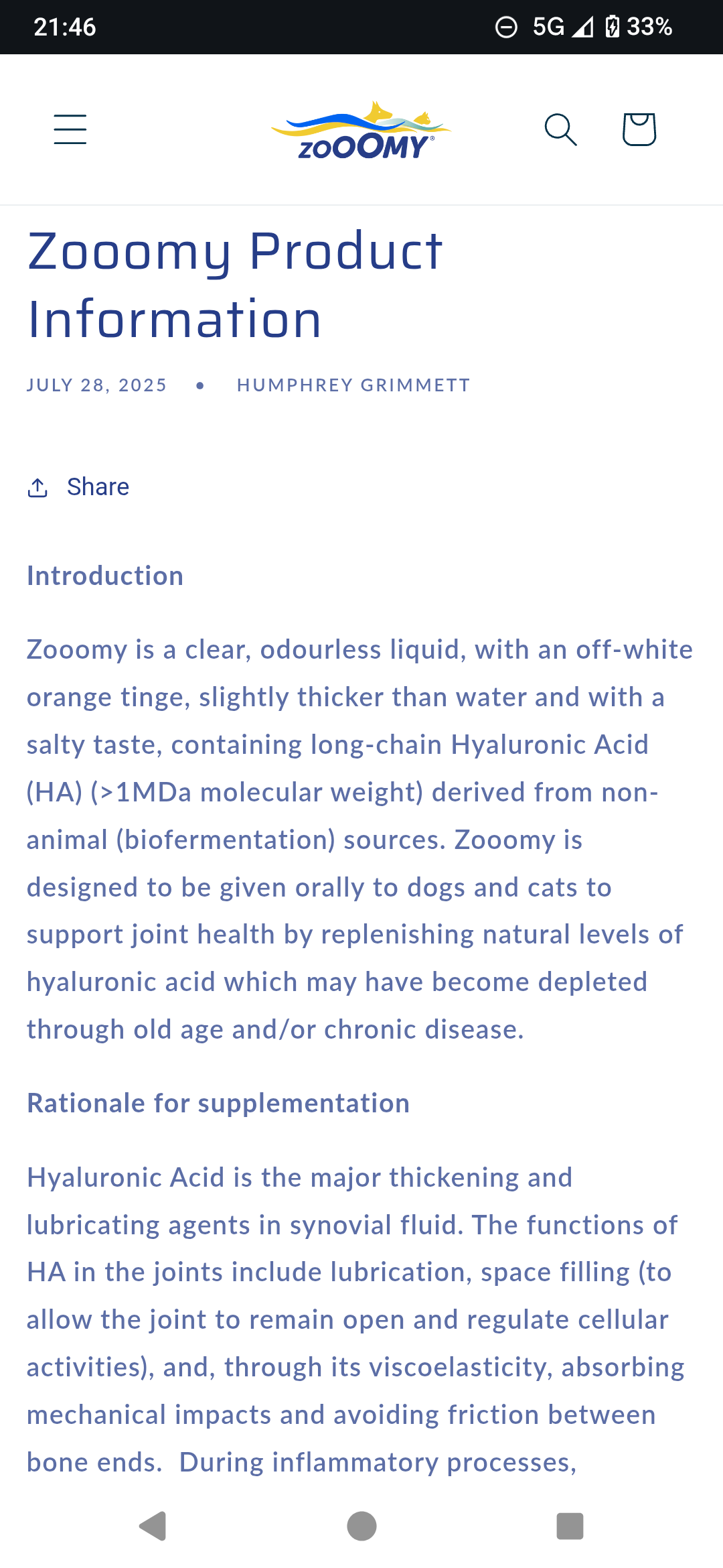 The only kidney friendly supplement for dogs with arthritis that hasn't been tested on animals! Made in U.K. It just came today from France, where they had some bottles. We have been giving it to Caramelo since November and I think it helps!