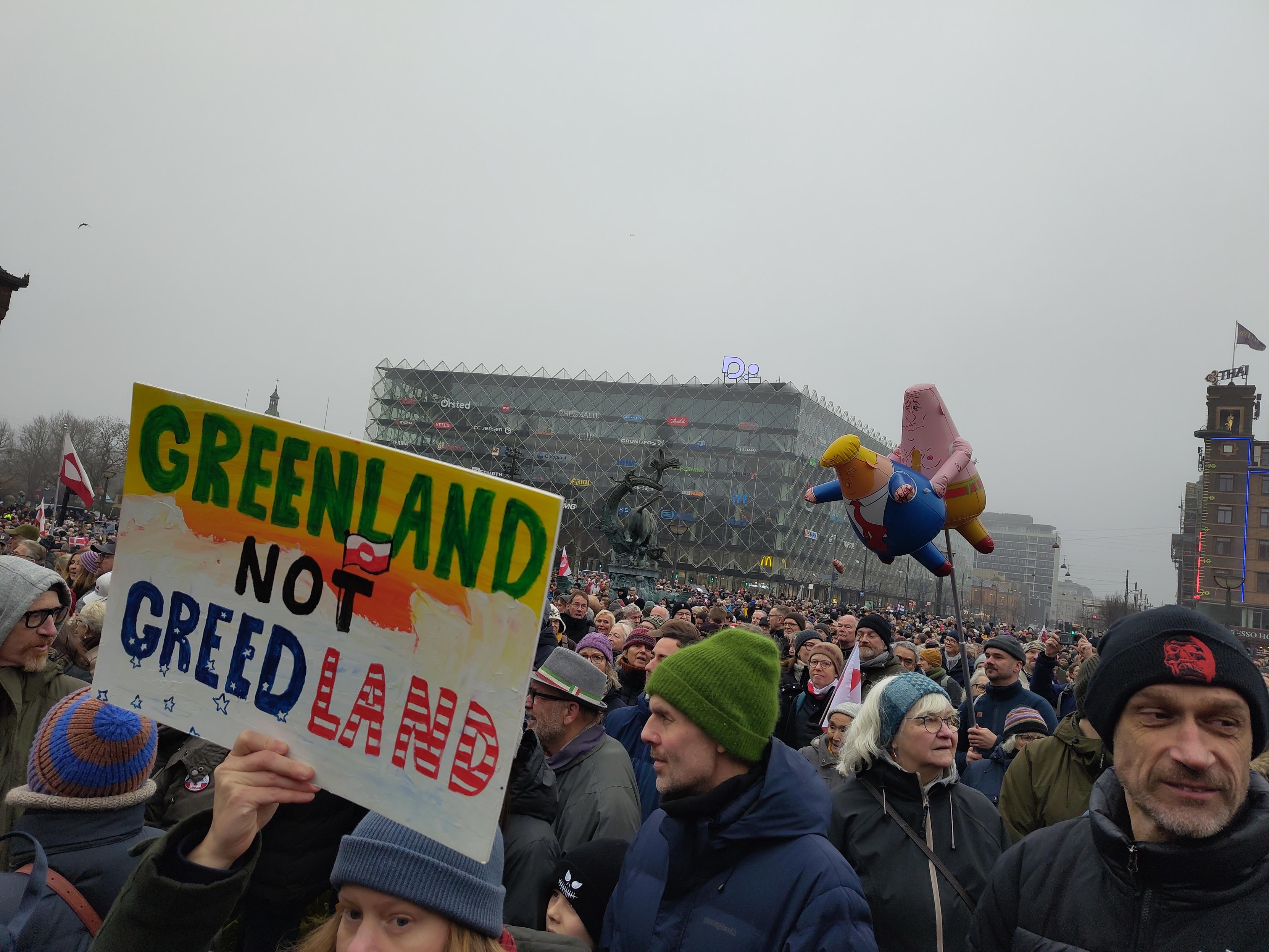 Absolutely packed city hall square in #Copenhagen today, in support of #Greenland. Later the crowd paid the embassy of USA a visit.