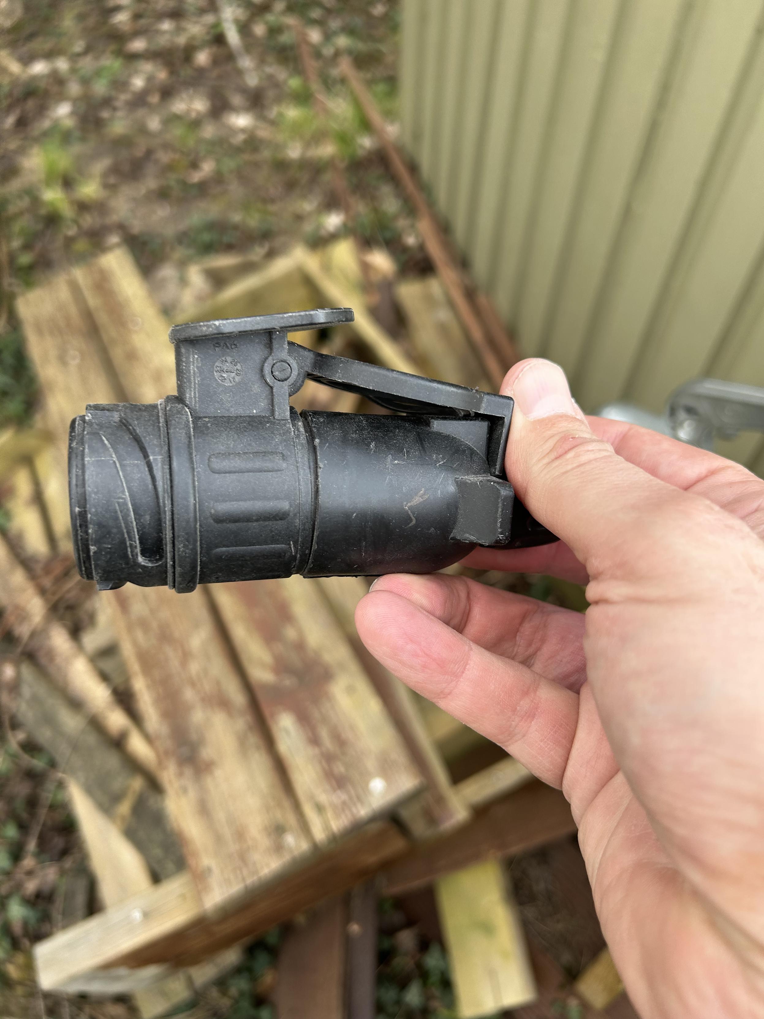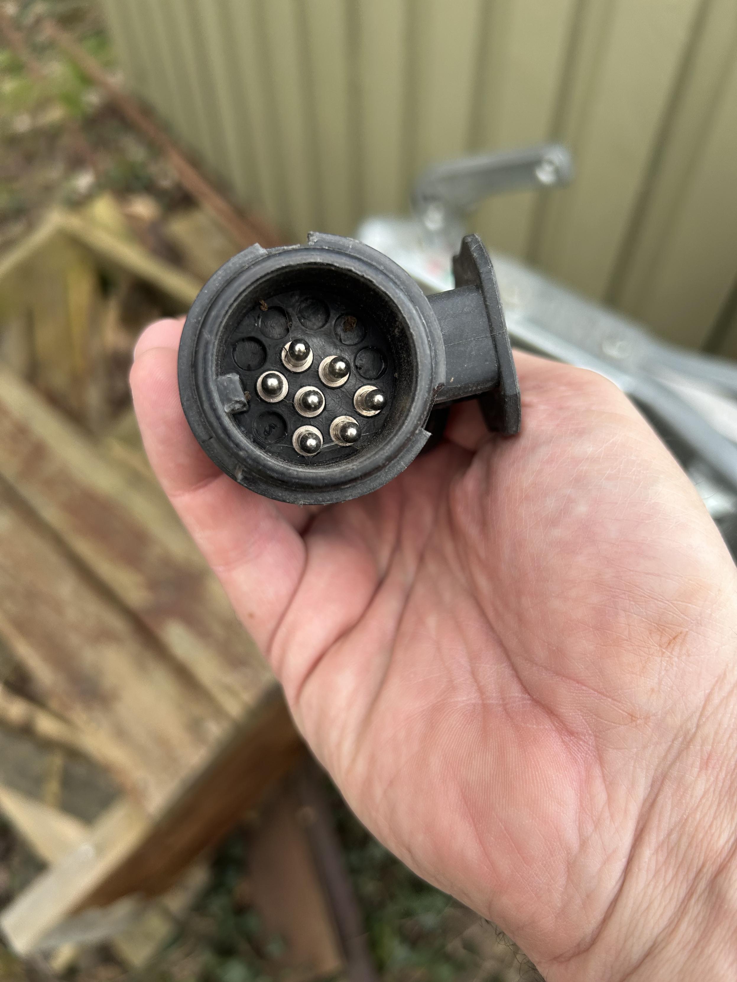 Hej gode mennesker. Hjælp mig her. Jeg har lige overtaget en trailer, hvis stik (7 benet) ikke passer til min bil (13 huller). Jeg har haft fat i forskellige adaptere, men ingen af dem har kunnet. Her ér billeder af begge. Hvem har dét praktiske hoved, som kan sige, hvilken adapter, jeg skal bruge. #DkMastodon #DkTrafik #FællesHjerne