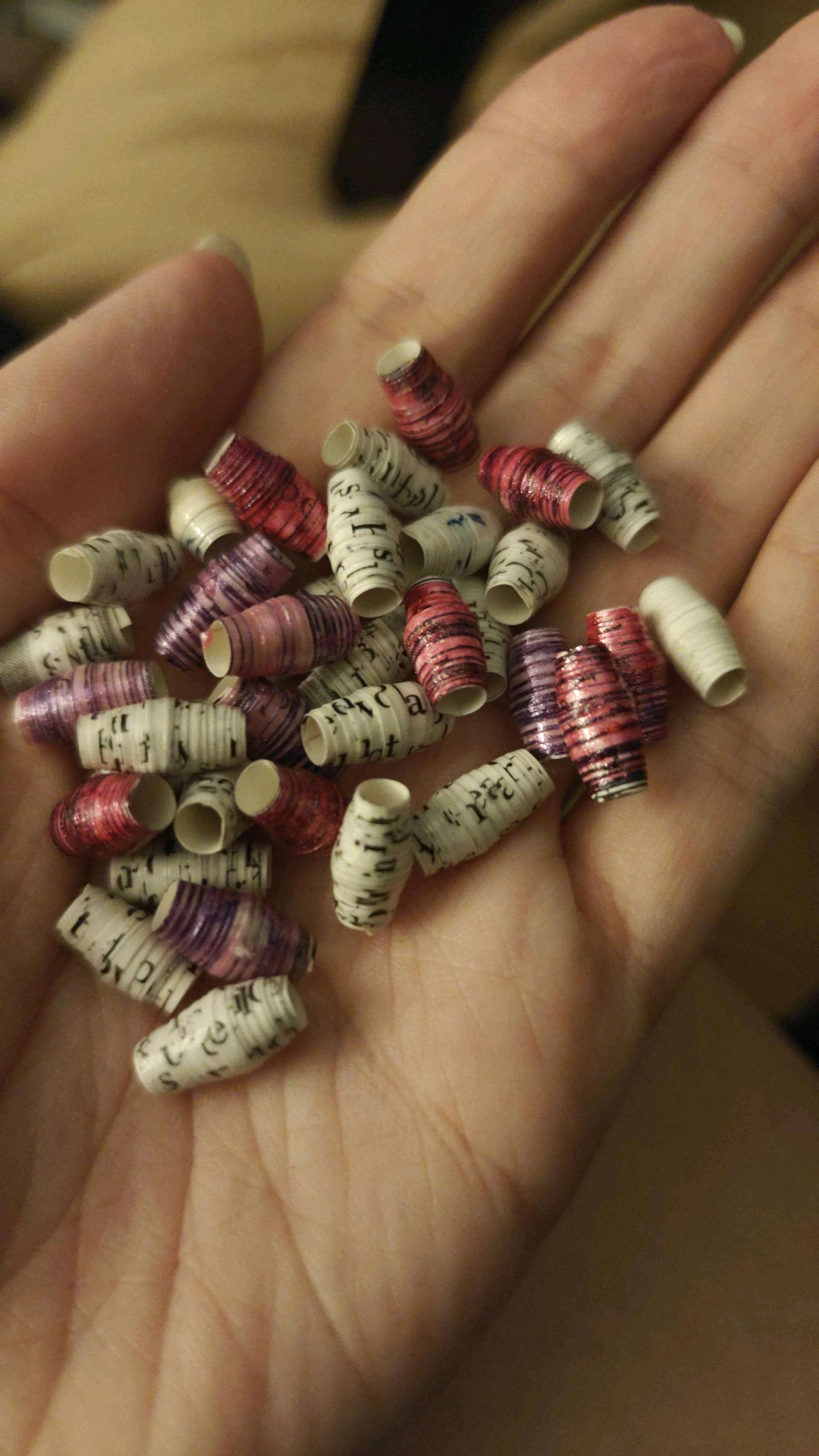 Ive been stress-making #paper #beads from a discarded history #book and old nail polish for the last several days