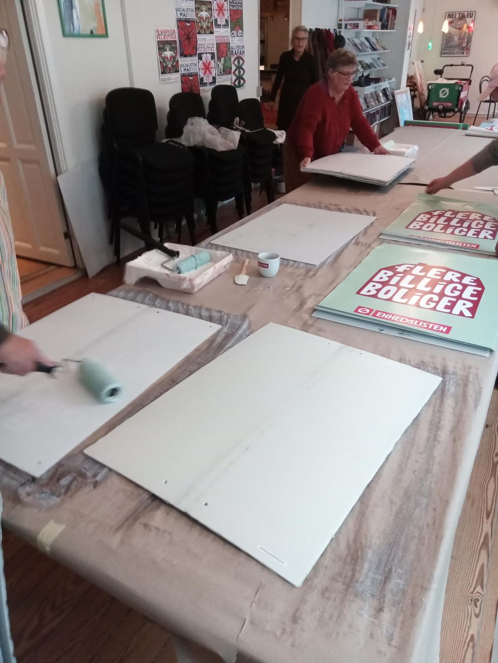 Plakatklister værksted. Gamle valgplakats-plader fra sidste valg får en gang klister og en ny plakat.