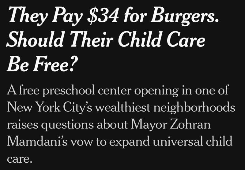 "They pay $34 for burgers. Should their doormen, cooks, nannies, and drivers be able to access free child care conveniently near their workplaces?"