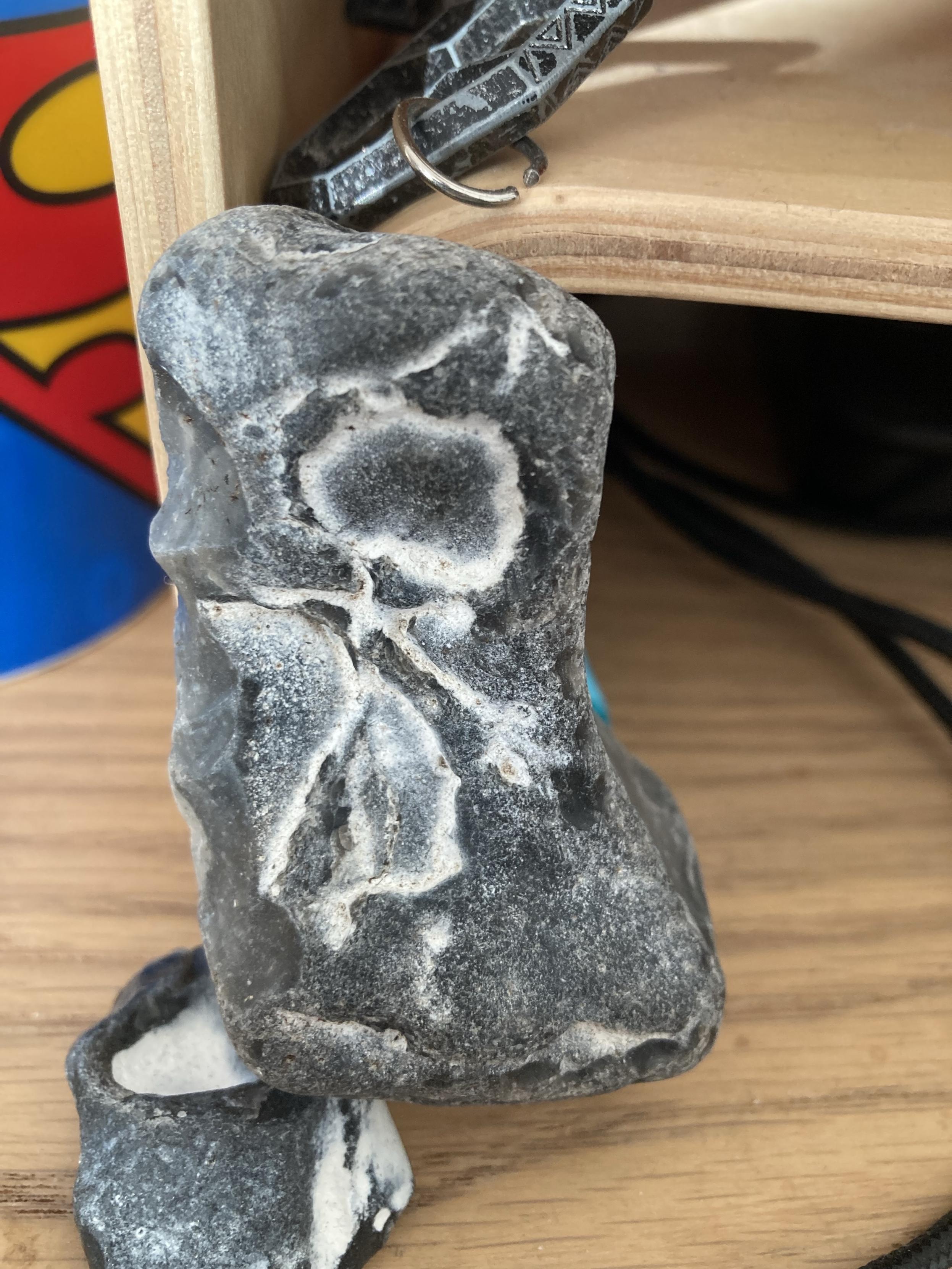 I sommers fandt jeg en sten med en kalkaflejring, der ligner en tændstikperson.