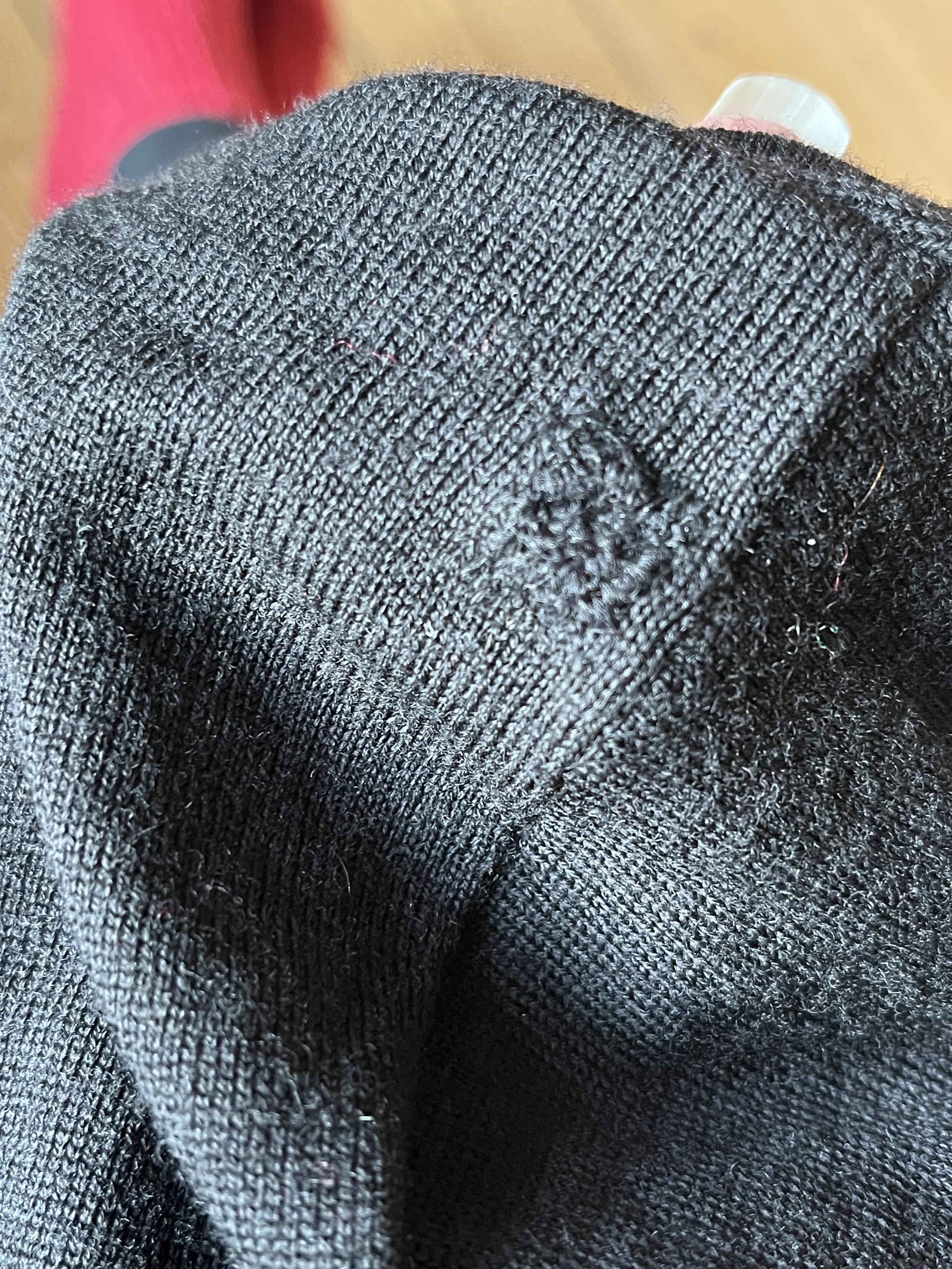 Har lappet mølhuller i en finstrikket sort pullover. Det er en umulig opgave at gøre rigtig pænt. Men nu er de lukkede, og så kunne næste skridt være at pynte det med noget broderi på et tidspunkt. Vi får se. #nørklerier #repair