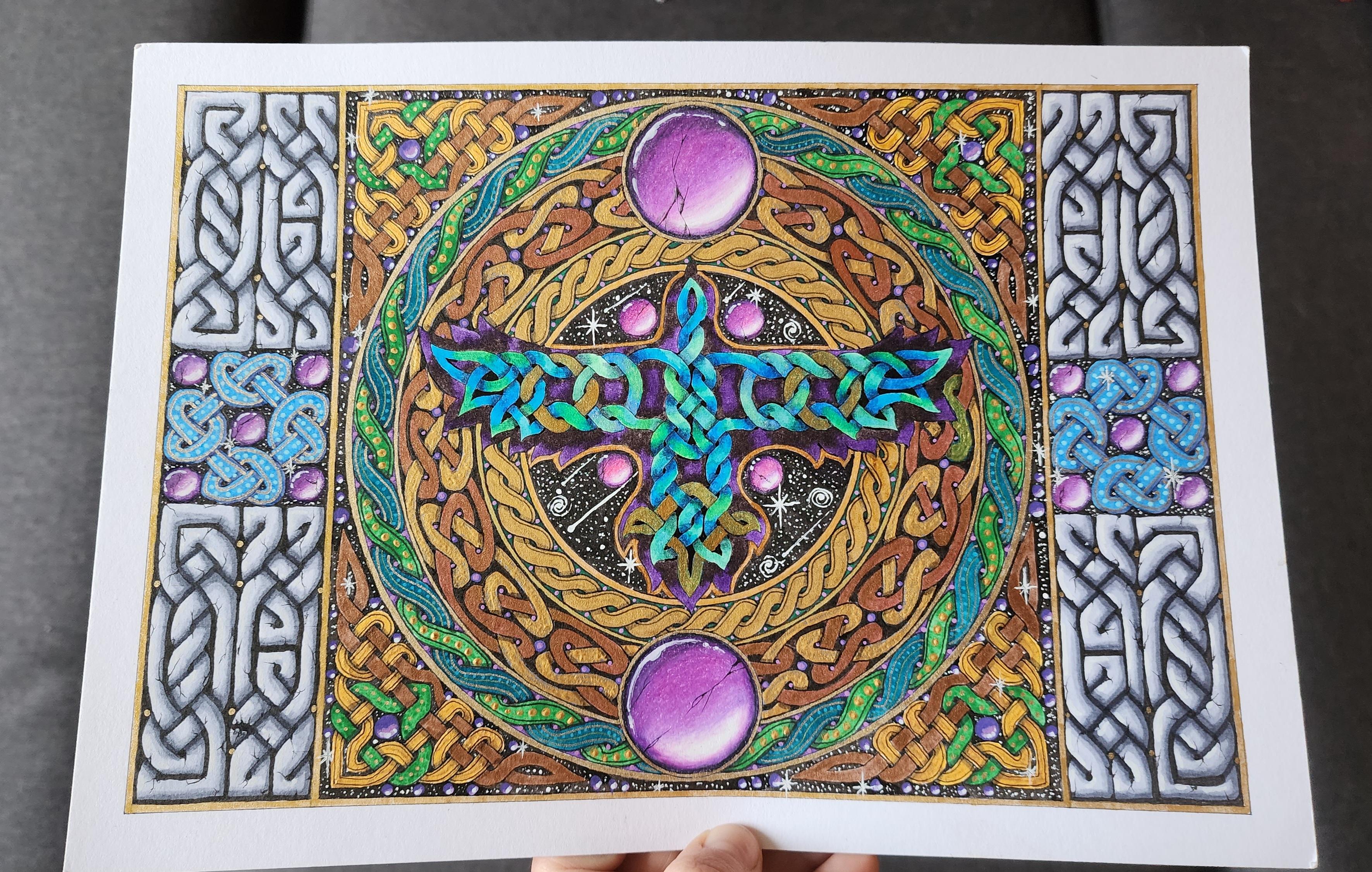 #MastoArt #CreativeToots #ArtForSale #OriginalArt #Celticknot #Raven #Corvid #FediGiftShop