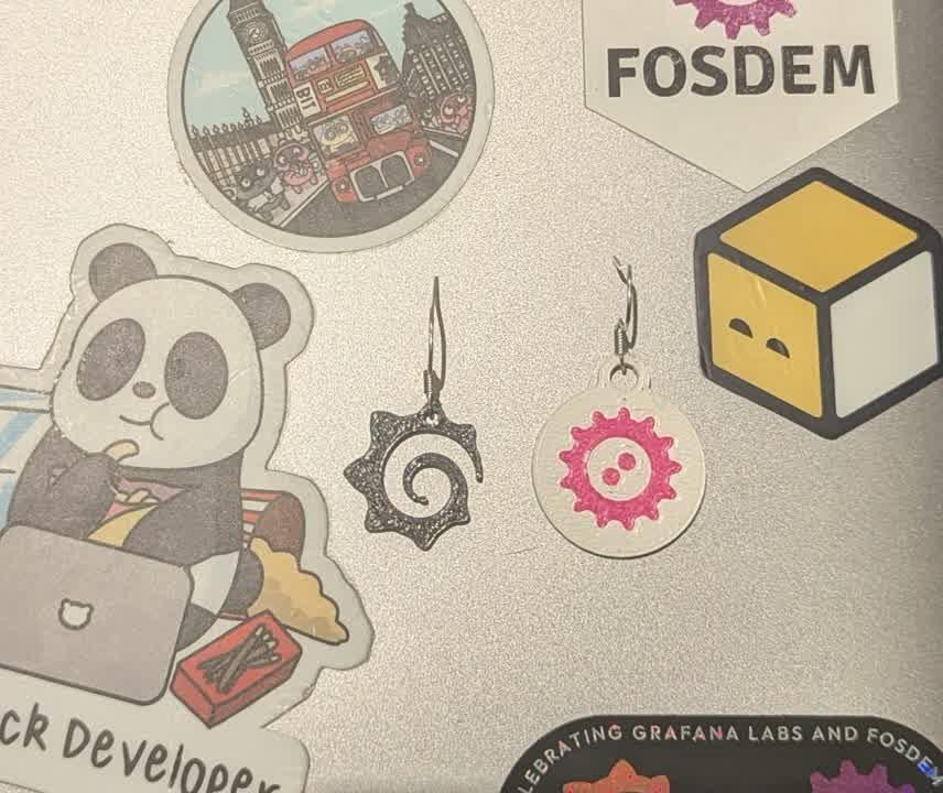Thank you to #prusa and @grafana for the coolest earrings ever. Another #fosdem is over, #CfgMgmtCamp next!