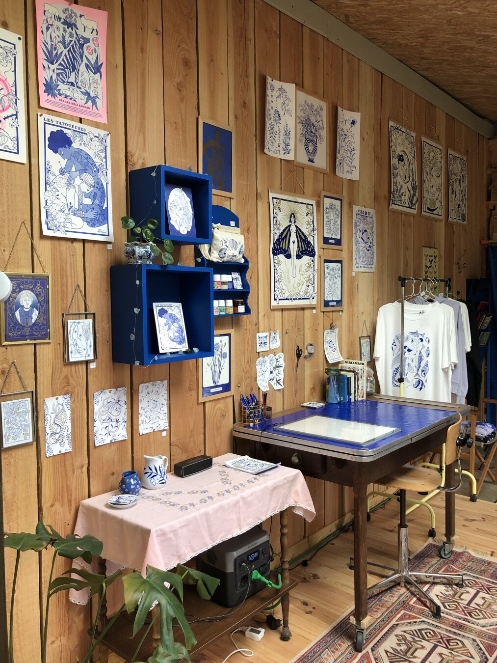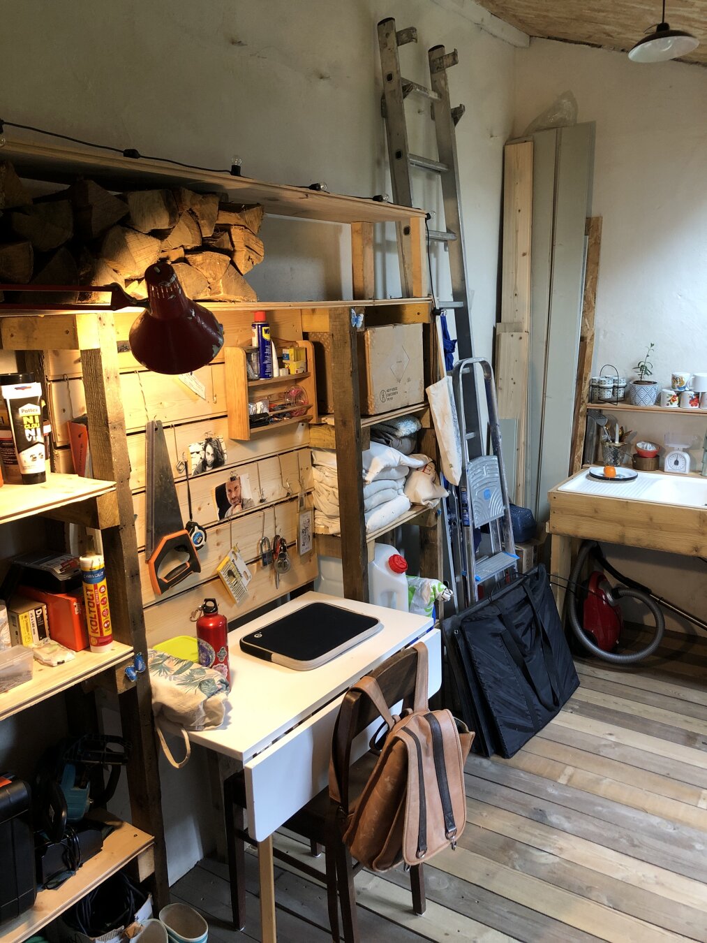 Voici l’atelier aujourd’hui ! Je suis fière du travail accompli et je m’y sens très bien.