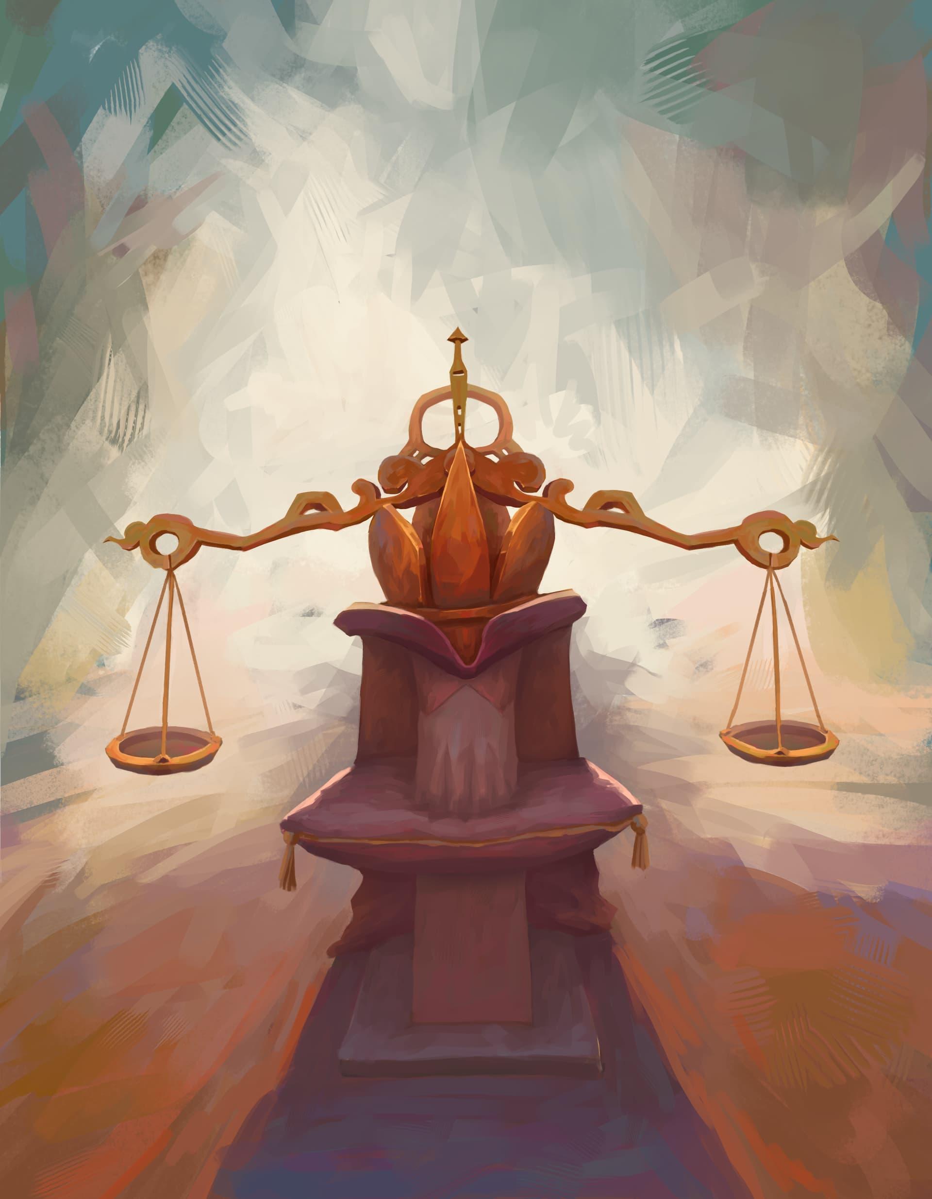 Image 1. The inconspicuous cylinder exerts psychological pressure on the wearer due to their poor decisions regarding people.Image 2. Mythical scales in the form of a headdress are used when authorities make decisions that are important for people’s lives.