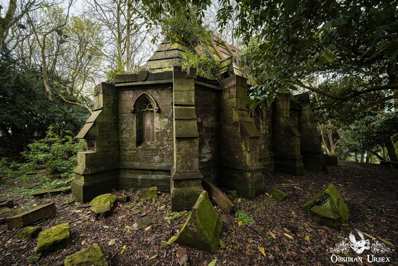An old Gothic crypt, lost and forgotten in the forest of Scotland