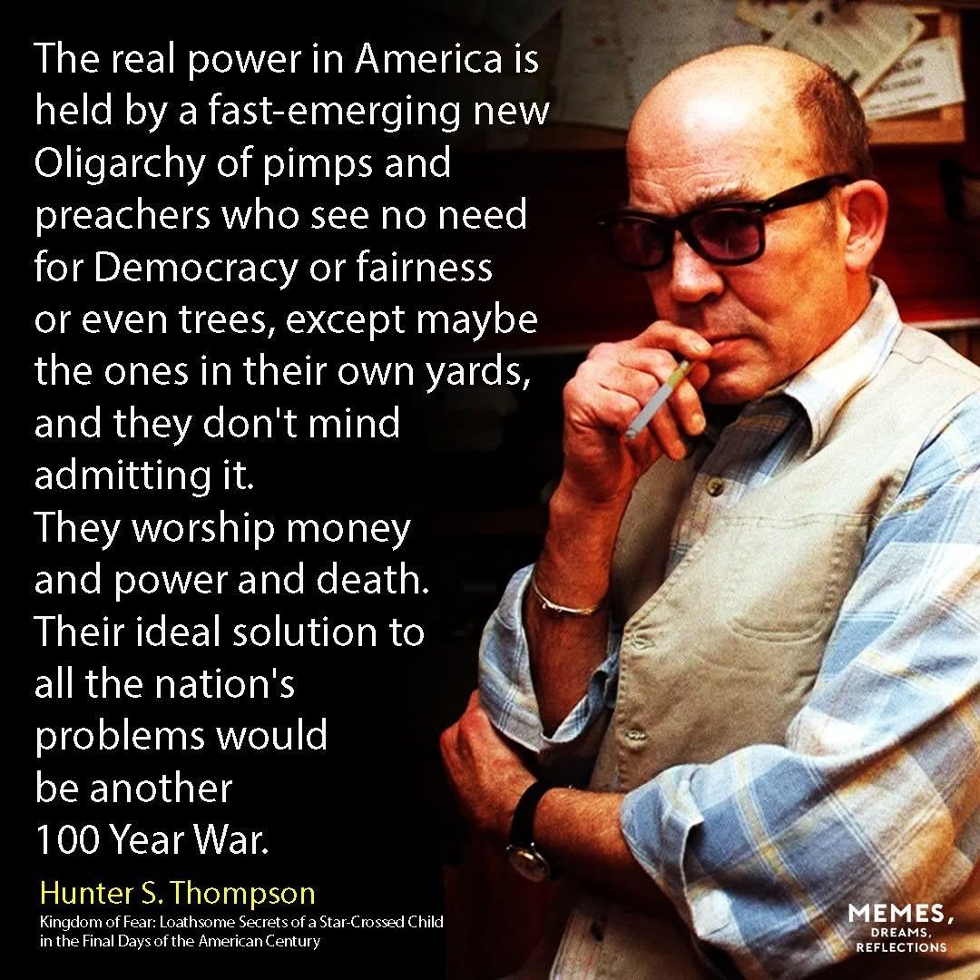 @BrianJopek He found it again in his last few years. His writing in the late 90s and beginning of this century didnt hold back his rage at the direction the country was going. At the time I felt he was being hyperbolic and he was being a new character because he was gone from Rolling Stone and had a different audience/editor, but now I think you might be right, he prolly saw something.