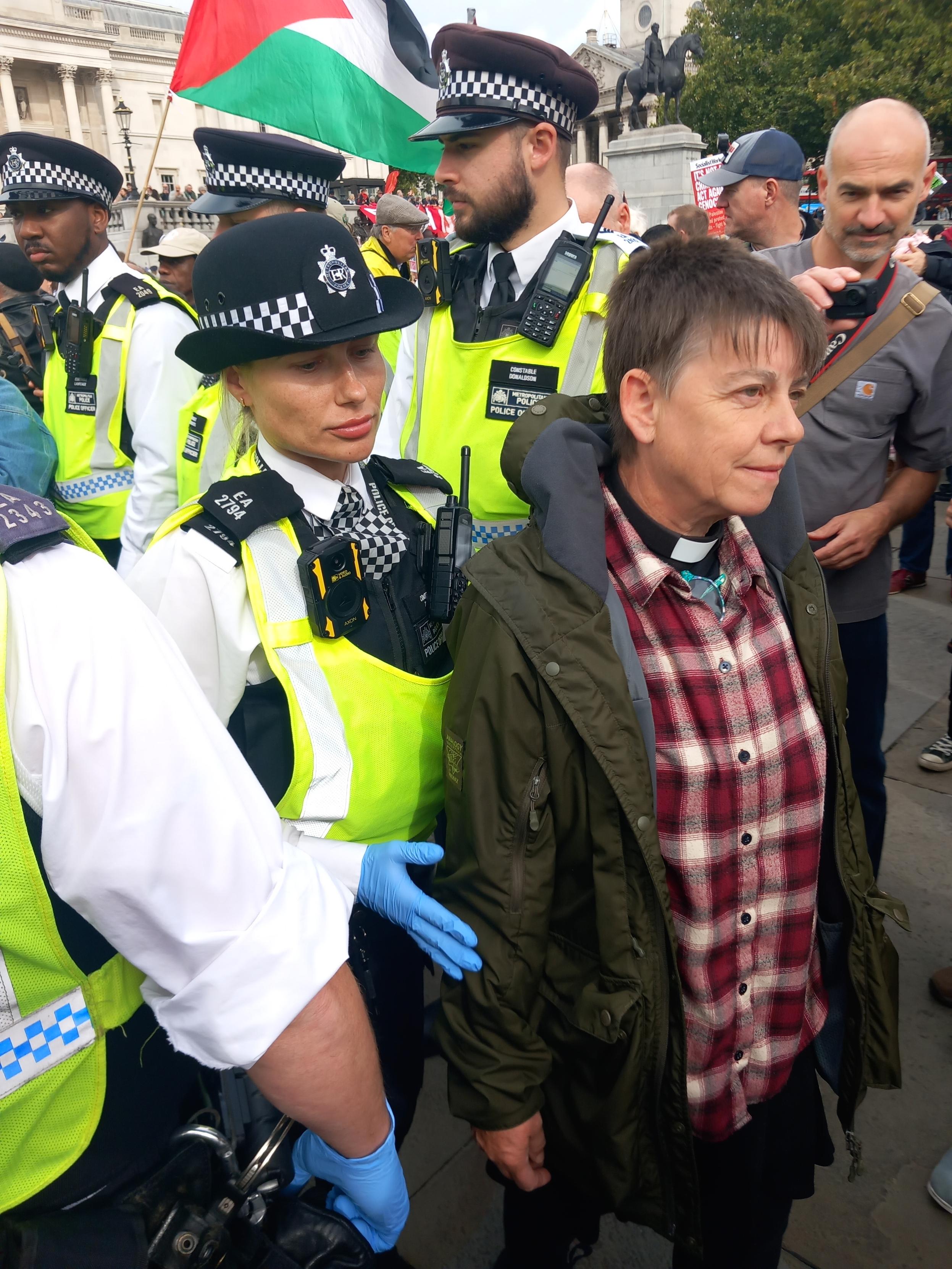 A vicar being arrested at today's #PalestineAction demo on #TrafalgarSquare Oct 4th