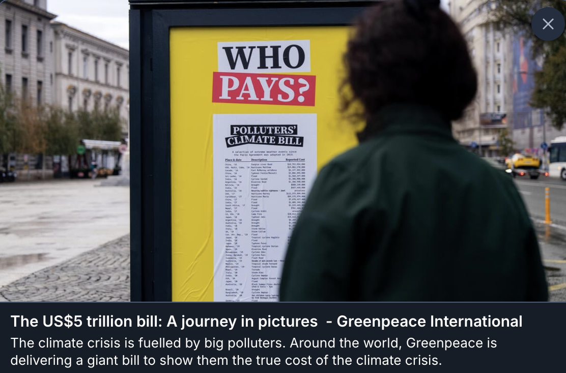 Leading up to COP30, a giant bill totalling the cost of the climate crisis has been raised by brave activists in cities across the world.