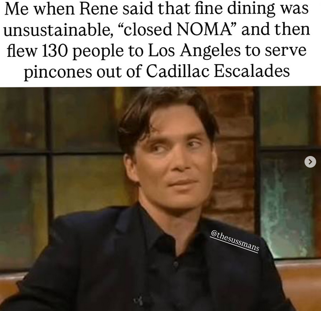 @magnus Lol and the illegal fences they keep putting up, to block public access around their premises. The municipality have declared it illegal several times, put still noma keeps putting it up, to fence in their sustainable garden. Very israel like